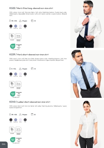 100% cotton micro twill. Non-iron fabric. Soft collar. Matching buttons. Double back yoke.
