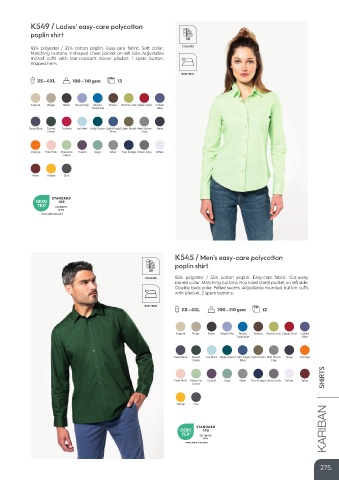 65% polyester / 35% cotton poplin. Easy-care fabric. Soft collar.