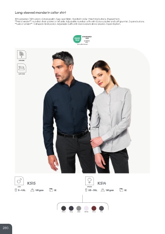 65% polyester / 35% cotton. Cotton poplin. Easy-care fabric. Mandarin collar. Matching buttons. Shaped hem.