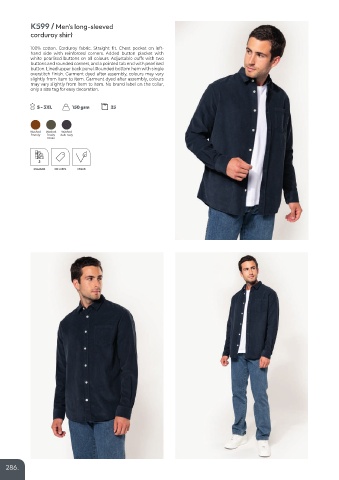 100% cotton. Corduroy fabric. Straight fit. Chest pocket on left-