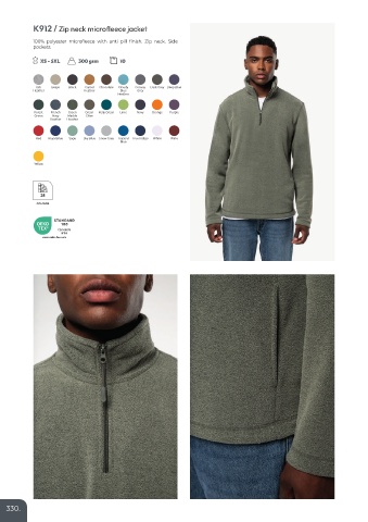 100% polyester microfleece with anti pill finish. Zip neck. Side