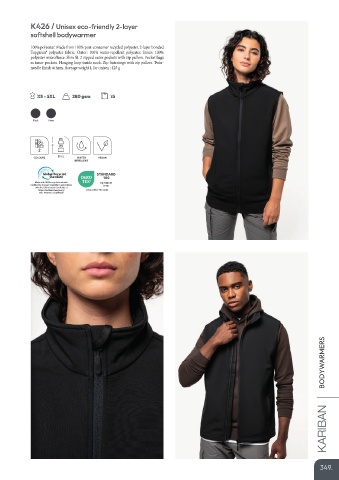 Topgreen® polyester fabric. Outer: 100% water-repellent polyester. Inner: 100%