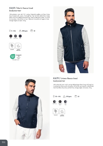 Zipped slanted side pockets. Full length zip. Top half with quilted eece lining.