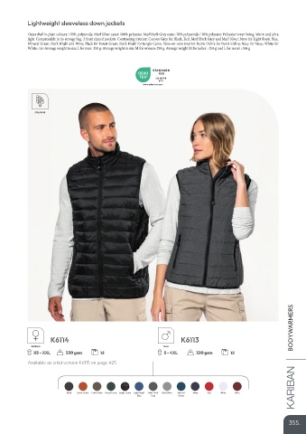 Outer shell in plain colours: 100% polyamide. Marl Silver outer: 100% polyester. Marl Dark Grey outer: 70% polyamide / 30% polyester. Polyester inner lining. Warm and ultra