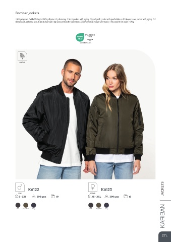 ribbed neck, cu s and hem. 1 zip at chest and 1 zip access at hem for decoration. K6123 : Average weight L for men's : 740 g and M for ladies' : 530 g