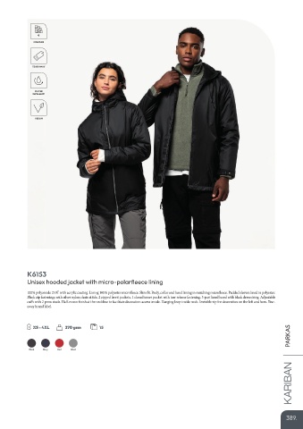 100% polyamide 210T with acrylic coating. Lining 100% polyester micro eece. Slim t. Body, collar and hood lining in matching micro eece. Padded sleeves lined in polyester.