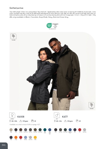 Outer: 100% polyester Oxford. Inner: quilted polyester. Fleece lined collar. 2 zipped outside pockets. Ladies’ version: zip fastening with invisible tab and press studs. 1 inside