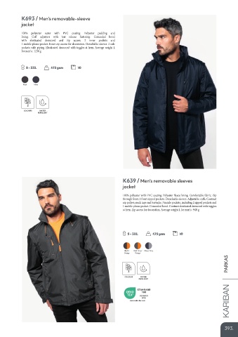 through front. 3 front zipped pockets. Detachable sleeves. Adjustable cu s. Contrast