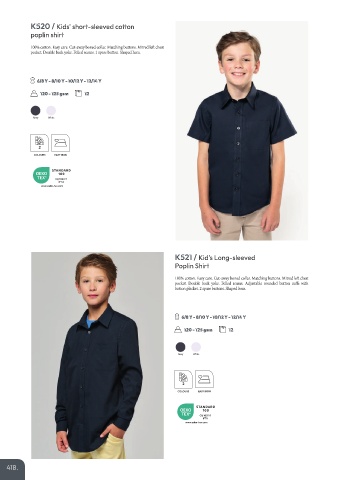 100% cotton. Easy care. Cut-away boned collar. Matching buttons. Mitred le chest
