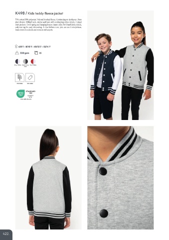 70% cotton/30% polyester. 3-thread brushed eece. Contrasting set-in sleeves. Press