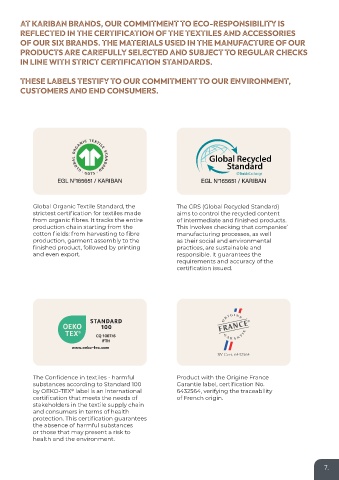 REFLECTED IN THE CERTIFICATION OF THE TEXTILES AND ACCESSORIES