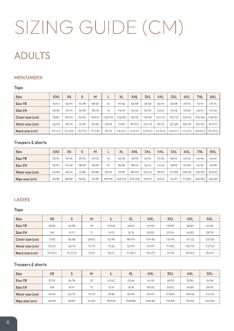 Size XXS XS S M L XL XXL 3XL 4XL 5XL 6XL 7XL 8XL