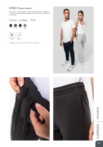 80% cotton / 20% polyester. 2-yarn brushed fleece. Straight fit.