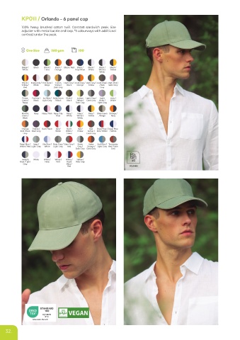 100% heavy brushed cotton twill. Contrast sandwich peak. Size