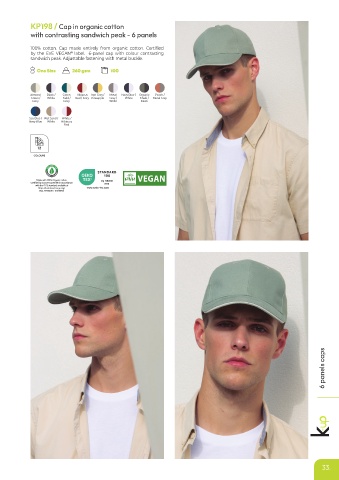 by the EVE VEGAN label. 6-panel cap with colour contrasting