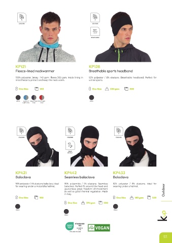 100% polyester. Jersey : 140 gsm ; fleece 200 gsm. Inside lining in 92% polyester / 8% elastane. Breathable headband. Perfect for