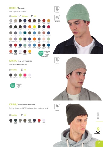 100% acrylic beanie with 100% polyester fleece lined inner band. 8
