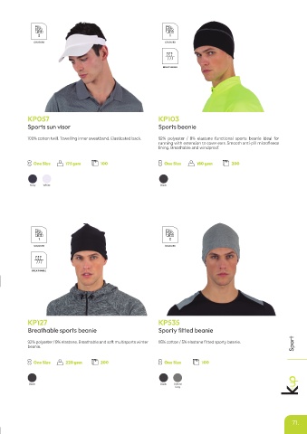 92% polyester / 8% elastane. Breathable and soft multisports winter 95% cotton / 5% elastane fitted sporty beanie. Sport