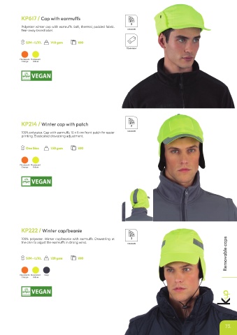 100% polyester. Cap with earmuffs. 10 x 6 cm front patch for easier