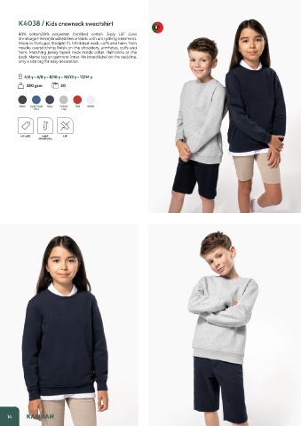 Made in Portugal. Straight fit. 1x1 ribbed neck, cuffs and hem. Twin