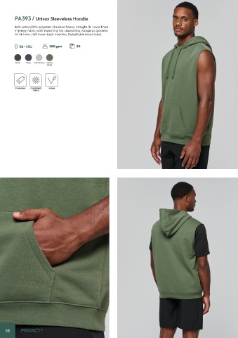in jersey fabric with matching flat drawstring. Kangaroo pockets.