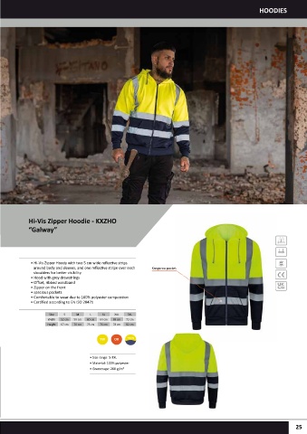 • Hi-Vis Zipper Hoody with two 5 cm wide reflective strips
