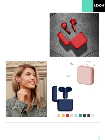 • Hands-free calls • Dimensions: 9.9 x 5.2 x 2.5 cm / 3.89 x 2.05 x 0.98” • Up to 6h music playtime on buds and an extra 18h