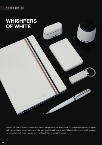 Discover the allure of all-white items and accessories with pristine white details. From chic notebooks to sophisticated pens,