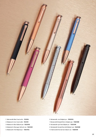 1. Mademoiselle Black Travel wallet - FEL222A 6. Mademoiselle Ivory Ballpoint pen - FSC2224G