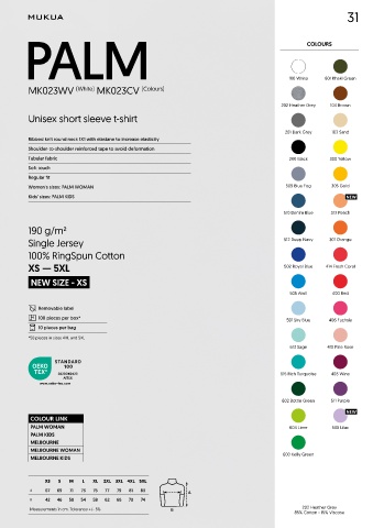 MK023WV (White) MK023CV (Colours) 100 White 601 Khaki Green