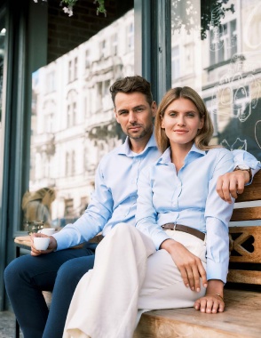 • dvojité sedlo a záševky na zadním dílu • dlouhé rukávy s kulatou manžetou na 2 knoflíčky