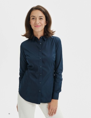 nakládaná náprsní kapsa • dámská: projmutý střih s bočními švy • pasové a prsní záševky • dlouhé rukávy s šikmou manžetou na 2 knoflíčky