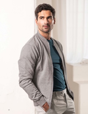 • celopropínací kovový zip • límec ve stylu “bomber” z žebrového úpletu 2:2 s 5 % elastanu