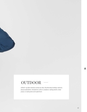 OUTDOOR Softshell = speciální materiál pro outdoorové oděvy. Charakteristická kombinace vlastností, jako jsou voděodolnost, větruodolnost, pružnost a prodyšnost, zajišťuje pohodlí a volnost pohybu v různých povětrnostních podmínkách. 146 147