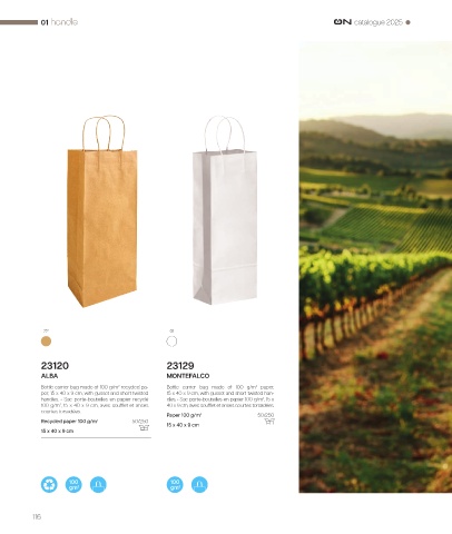 handles. • Sac porte-bouteilles en papier recyclé dles. • Sac porte-bouteilles en papier 100 g/m², 15 x