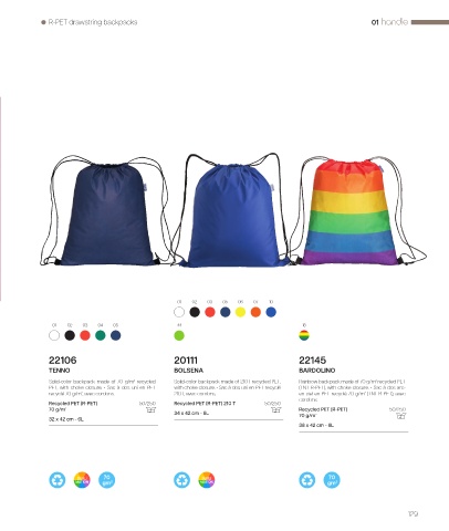 PET, with choke closure. • Sac à dos uni en PET with choke closure. • Sac à dos uni en PET recyclé (TNT R-PET), with choke closure. • Sac à dos arc-