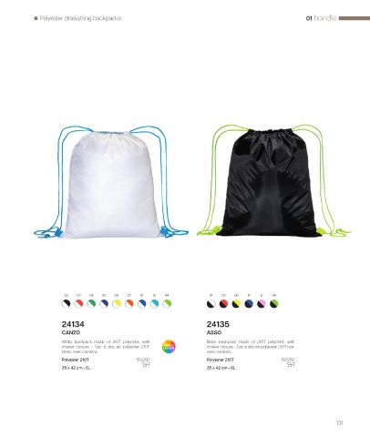 White backpack made of 210T polyester, with Black backpack made of 210T polyester, with