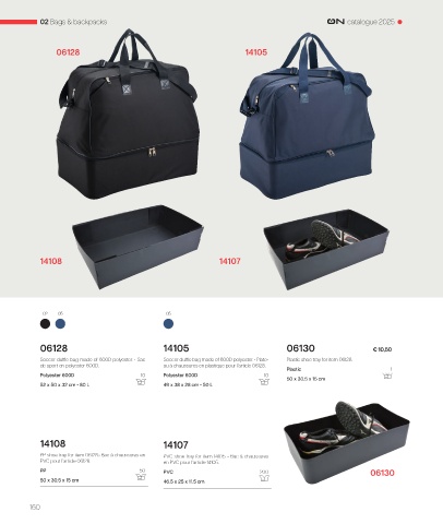 Soccer duffle bag made of 600D polyester. • Sac Soccer duffle bag made of 600D polyester. • Plate- Plastic shoe tray for item 06128.