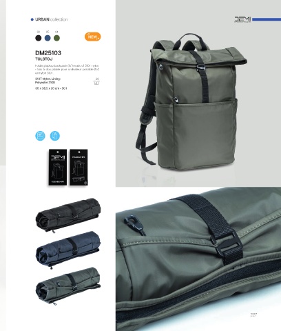 URBAN collection 02 05 64 NEW DM25103 TOLSTOJ Folding laptop backpack (15”) made of 310T nylon. • Sac à dos pliable pour ordinateur portable (15”) en nylon 310T. 310T Nylon, Lining: 20 Polyester 210D 30 x 38.5 x 26 cm - 30 l 227