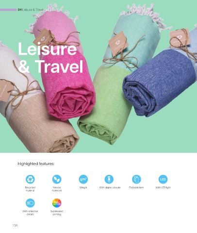 04 Leisure & Travel Leisure & Travel Highlighted features: gm 2 LED Recycled Natural Weight With zipper closure Foldable item With LED light material materials With reflective Sublimation details printing 236