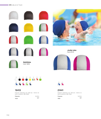 Polyester swimming cap, adult size. • Bonnet de Polyester swimming cap, child size. • Bonnet de