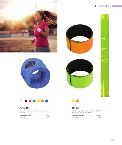 Sponge sweatband. • Bandeau en éponge pour Polyester “clip clap” reflective bracelet. • Bracelet