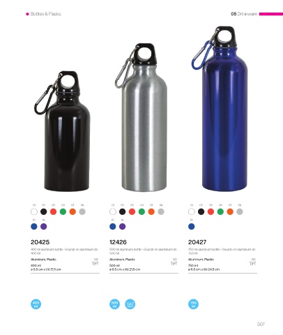 400 ml aluminum bottle • Gourde en aluminium de 500 ml aluminum bottle • Gourde en aluminium de 750 ml aluminum bottle • Gourde en aluminium de