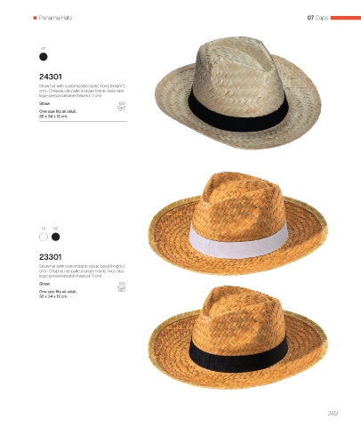 cm) • Chapeau de paille à larges bords. Avec élas-