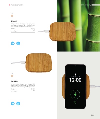 Bamboo wireless charging base. Charging USB