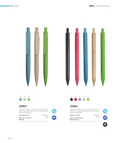 Click pen made of wheat straw (50%) and PP Click pen made of wheat straw (50%) and PP