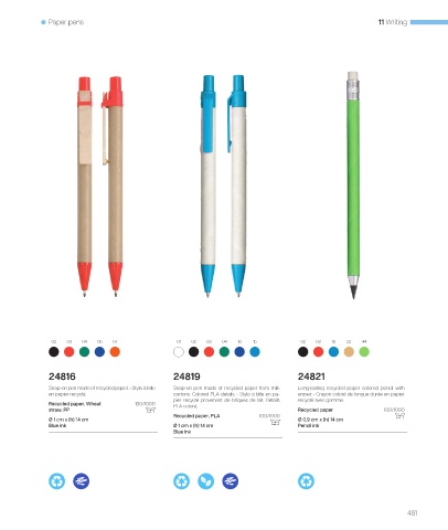 Snap-on pen made of recycled paper. • Stylo à bille Snap-on pen made of recycled paper from milk Long-lasting recycled paper colored pencil with