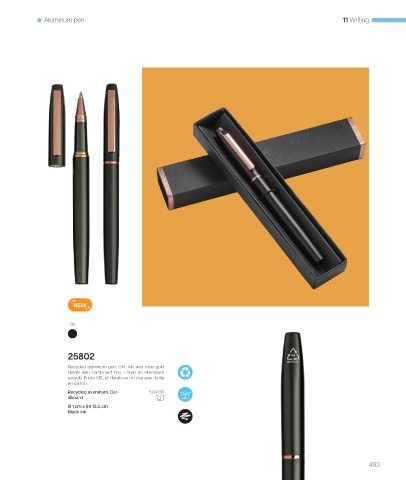 Recycled aluminum pen. GEL ink and rose gold