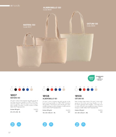 the base and short handles. It is OEKO-TEX Stan- 120 g/m² cotton shopper bag with gusset at the Maxi shopper bag made of 135 g/m² cotton with