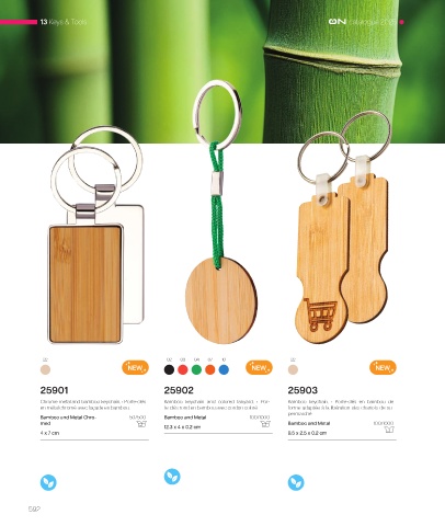 Chrome metal and bamboo keychain. • Porte-clés Bamboo keychain and colored lanyard. • Por- Bamboo keychain. • Porte-clés en bambou de